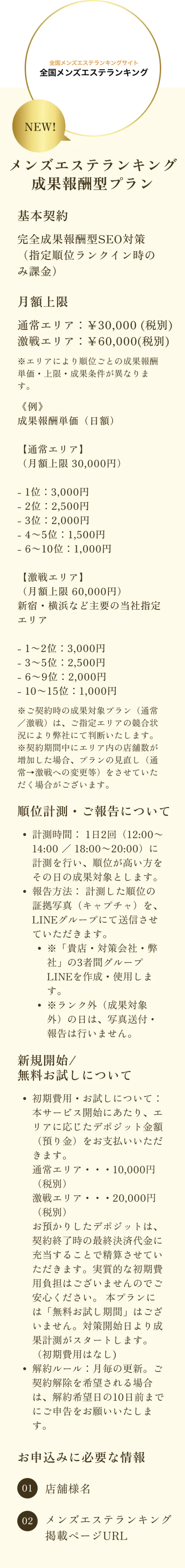 ※どちらのランキングページで何位までランクアップさせたいなど、具体的なご要望がございましたらご教示下さい。最適なプランニングを行います。
